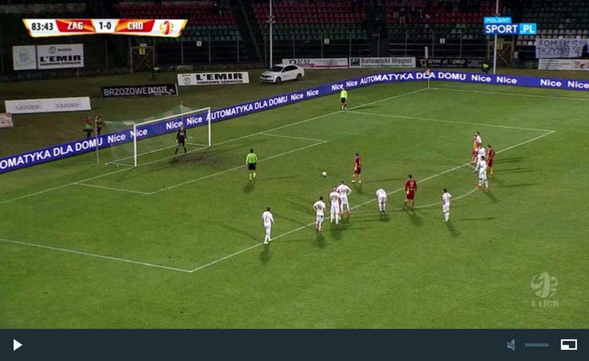 Dwukrotnie rzut karny wykonywał Jakub Biskup. Do bramki trafił za drugim razem. | fot. screen TV Polsat Sport