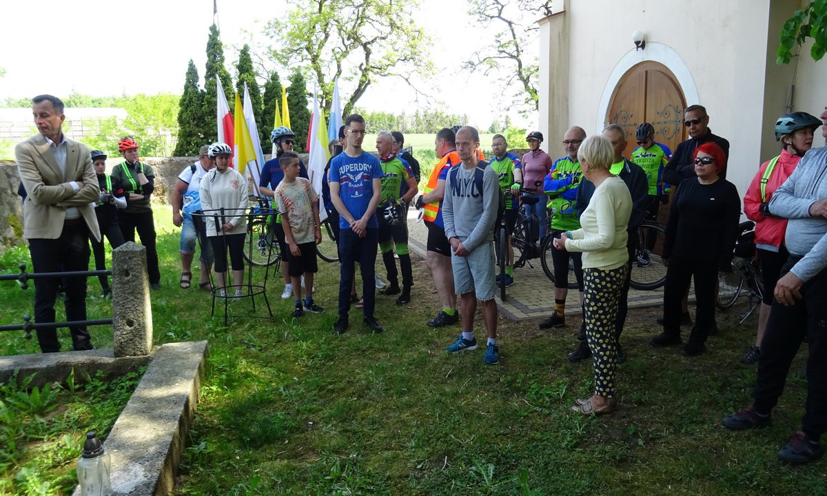 Kawalkada rowerzystów następnie ruszyła do Moszczenicy, gdzie jest kościół filialny nieżychowickiej parafii. Tam uczestnicy na przykościelnym cmentarzu, mieli możliwość zobaczyć symboliczny grób ks. Josepha Rinka, zasłużonego badacza historii Kosznajderii. Urodził się właśnie w Moszczenicy w 1878, a zmarł tragicznie w 1945 podczas powojennej repatriacji z Gdańska, gdzie mieszkał.