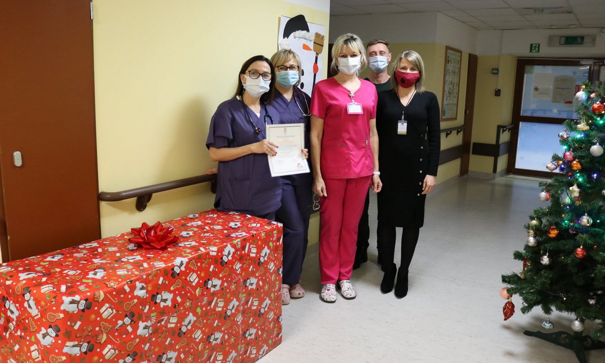 – Na naszym oddziale na parterze mamy dla niego idealne miejsce. Zostanie rozłożony jak tylko tam wrócimy – mówi Małgorzata Ossowska, pielęgniarka koordynująca. Pięknie zapakowany prezent zawieźli Joanna Wyrwas i Janusz Stefankiewicz.