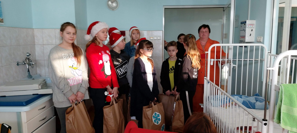 Uczniowie w szpitalu przekazali zebrane zabawki i życzyli wszystkim szybkiego powrotu do zdrowia oraz szczęścia na Święta i Nowy Rok. Na zakończenie Liderzy dostali słodkie podziękowania i podziękowanie dla wszystkich uczniów i nauczycieli.