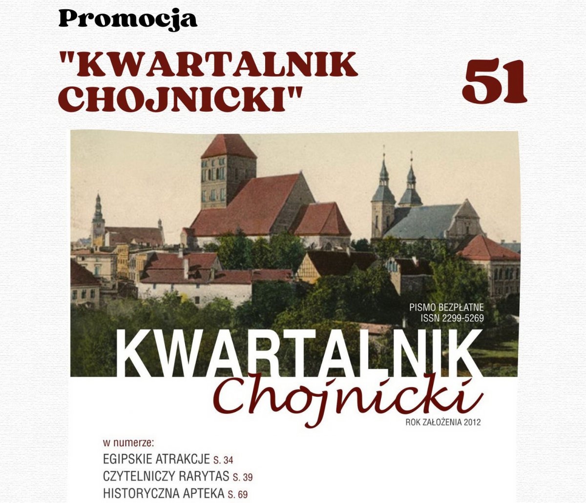 Przypominamy, kwartalnik wychodzi od 2012 roku i wydawany jest cztery razy w roku. Pismo jest bezpłatne, a odebrać je można w Miejskiej Bibliotece Publicznej. Publikowane w nim są artykuły dokumentujące życie społeczno - kulturalne Chojnic, przybliżające bieżące informacje z życia miasta, prezentujące pracę Urzędu Miejskiego, przypominające znane i zapomniane karty z przeszłości Chojnic i okolic, a także promujące walory turystyczne i lokalną twórczość artystyczną.