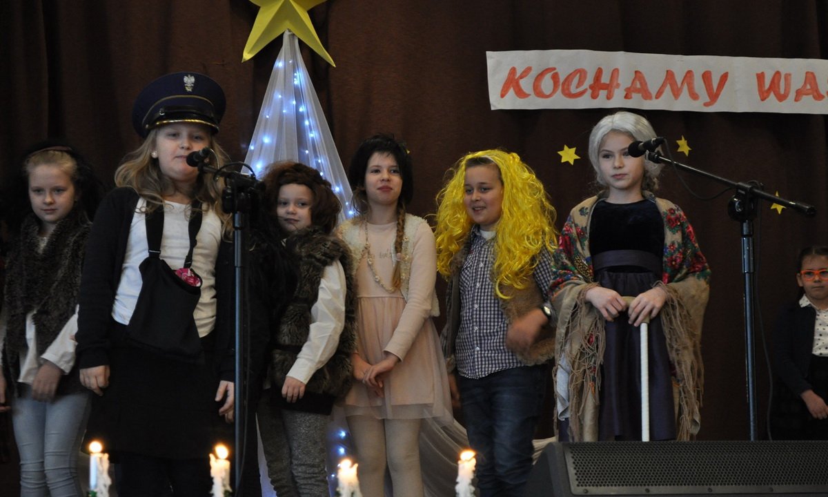 Dzieci z klas I - III oraz z "zerówki", wystąpiły na scenie z wierszykami, piosenkami oraz krótkimi inscenizacjami. Było bardzo wesoło i radośnie. Na koniec dyrektor szkoły, przekazał na ręce babć i dziadków, życzenia od całej szkoły.