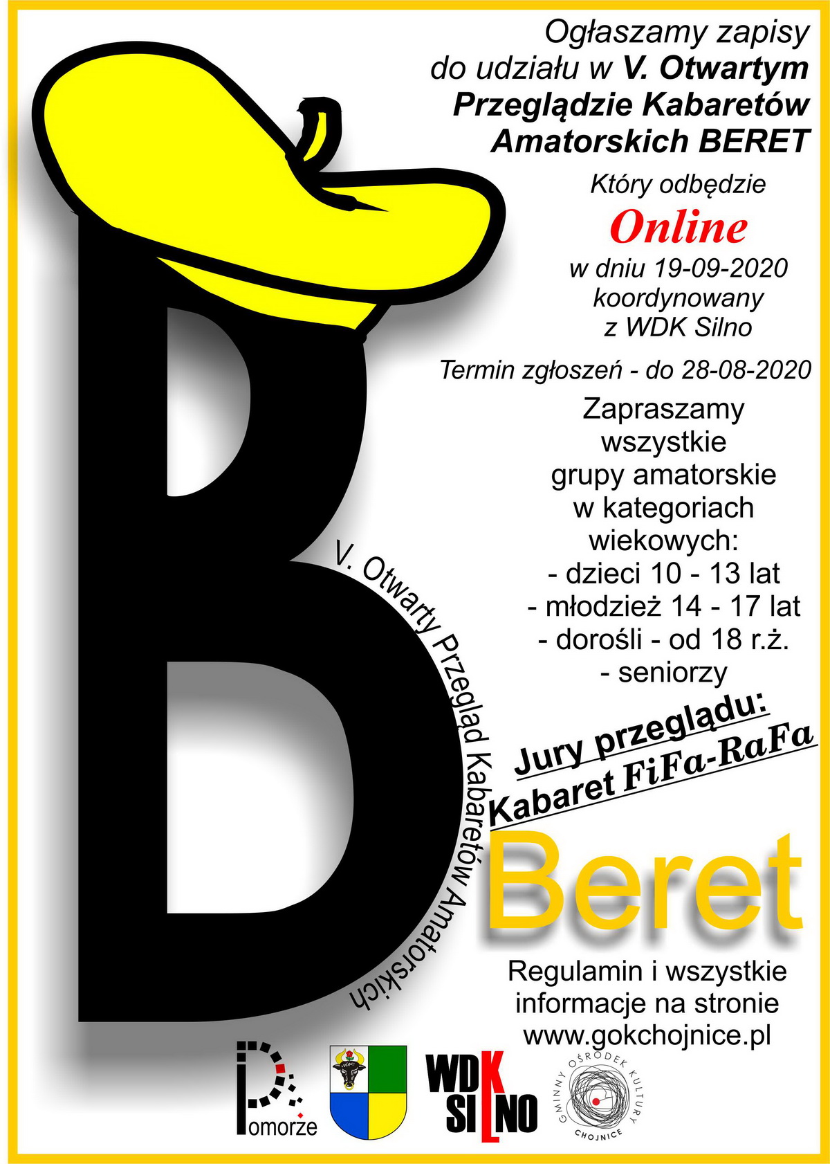 Gminny Ośrodek Kultury i WDK Silno zapraszają do udziału online w przeglądzie kabaretów amatorskich „Beret 2020”. Przegląd ma charakter konkursu i skierowany jest do dzieci, młodzieży i dorosłych.