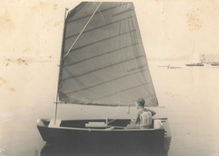 Żagiel do pierwszego Chojnickiego Optimista (a być może pierwszego polskiego) uszył Otton Weiland. Łódkę wodowano latem 1965 roku a pierwszym sternikiem prototypowej łodzi był syn Eugeniusza Szulca – Piotr .