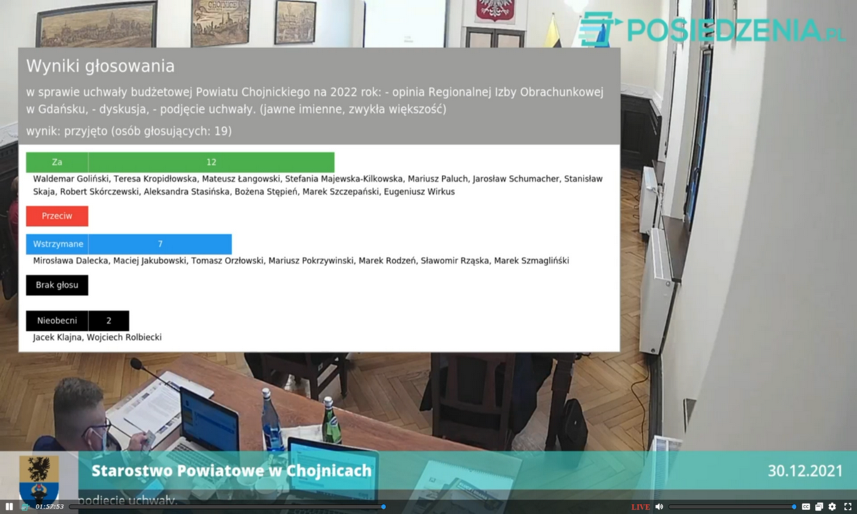 Na sesji Rady Powiatu radni niejednogłośnie przyjęli budżet na 2022. W toku dyskusji trwającej ponad 1 g 20 minut wracano do takich spraw, jak dotowanie MKS Chojniczanki, podwyżki pensji dla władz, zakup drona czy z początku kadencji jak Volvo i laptop.