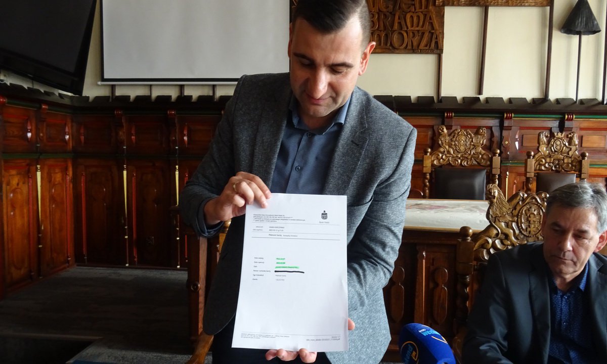 Wiceburmistrz na poparcie swoich słów zaprezentował potwierdzenie przelewu, z którego wynika, iż sam zapłacił za kwiaty na Dzień Kobiet. | fot. (je)