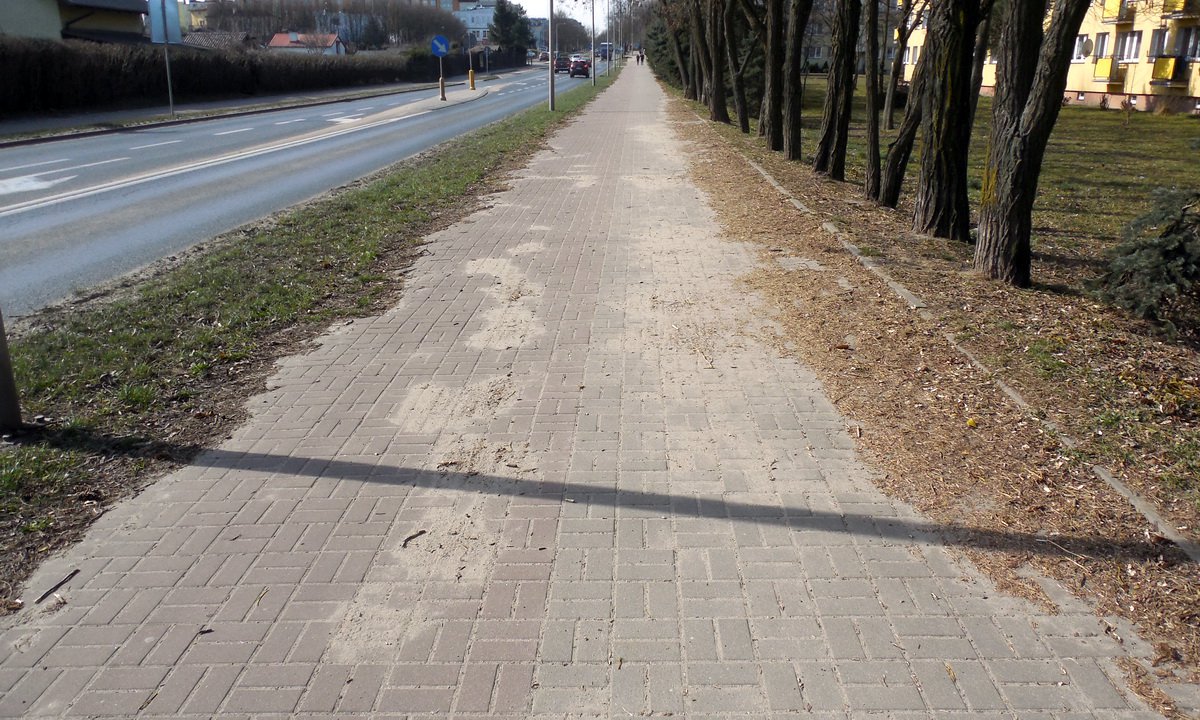 Zapadliska wokół studzienek są o wiele mniejsze, niż na gminnym odcinku ul. Tucholskiej, czyli drogi z Chojnic do Tucholi. Tam od Pawłowa do ronda, mimo ciągłej walki drogowców, wokół studzienek są spore uskoki. Natomiast na ul. Kościerskiej przydałoby się naprawić ścieżkę rowerową z polbruku. Ma nierówną nawierzchnię , nie tylko z powodu korzeni rosnących obok drzew. Natomiast na posprzątanie po zimie czeka przede wszystkim chodnik i ścieżka rowerowa.