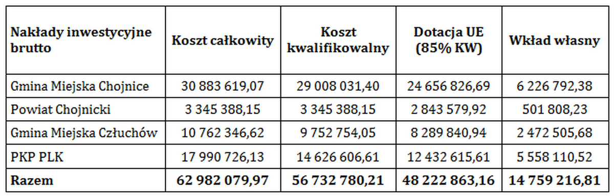 Pod tą zawiłą nazwą kryje się gruntowana modernizacja obu dworców. W tej inwestycji miasto jest liderem a partnerami są gmina miejska Człuchów, powiat chojnicki oraz spółka PKP PLK S.A. - Dostaniemy 48 222 000 zł środków unijnych przy wkładzie własnym wynoszącym 14 759 000 zł. Łącznie budżet inwestycji wyniesie 63 miliony – wylicza burmistrz Arseniusz Finster. - To Największe unijne wsparcie w historii Chojnic.