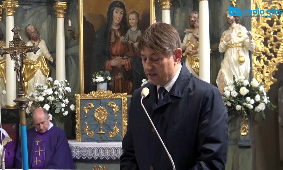 Księdza Kazimierza Matyję, jako Zasłużonego Obywatela Gminy Chojnice pożegnał wójt Zbigniew Szczepański. | fot. Screen Radio Głos
