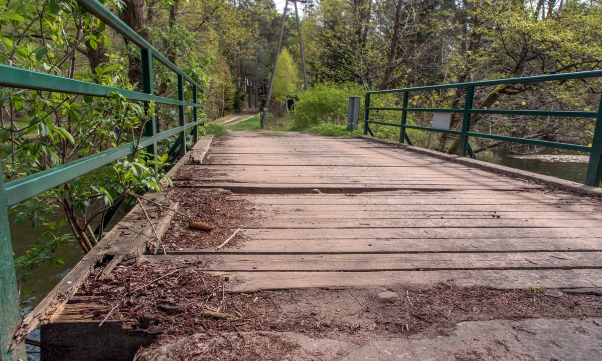 26 kwietnia 2024 09:09Most ma wymiary 7,7 m na 3,4 m. Wykonawca m.in. rozbierze stare, zniszczone drewno, wykona nowy pokład górny mostu z bali, odnowi konstrukcyjne elementy stalowe i ułoży dojazdy do mostu z płyt betonowych.