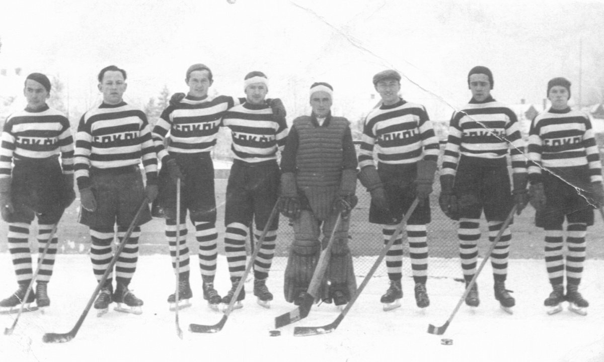 Hokeiści Towarzystwa Gimnastycznego Sokół w latach dwudziestych XX wieku. | fot. Fotografia w zbiorach KS.