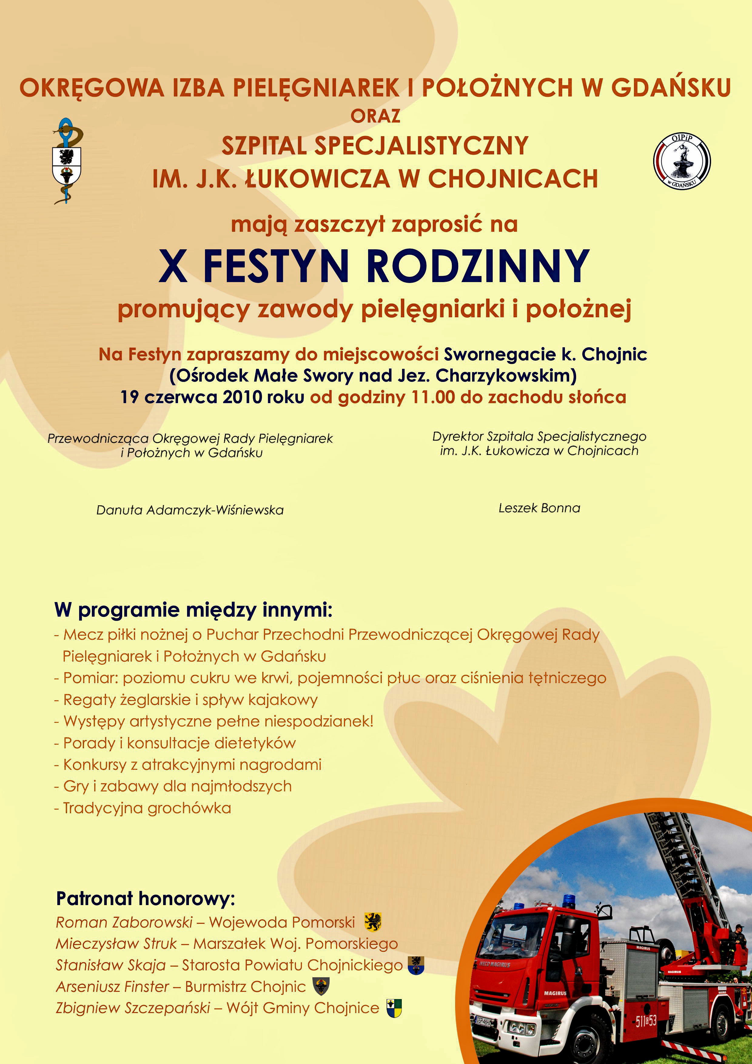 Organizatorami są Okręgowa Izba Pielęgniarek i Położnych w Gdańsku, oraz Szpital Specjalistyczny im. J. K. Łukowicza w Chojnicach. Impreza odbędzie się w Ośrodku Małe Swory 19 czerwca od godziny 11. Potrwa, jak zapewniają organizatorzy - do zachodu słońca. ![]()