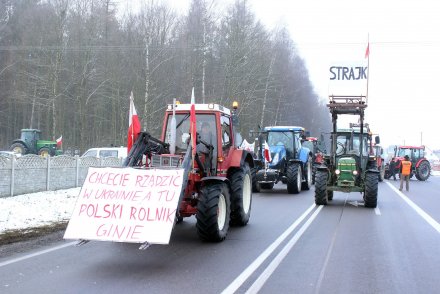 150 rolników z całego powiatu chojnickiego blokuje dzisiaj (05.02.) drogę krajową nr 22 w Jeziorkach gm. Chojnice. Domagają się zmiany polityki rolnej. Protest rozpoczął się o godz. 10.