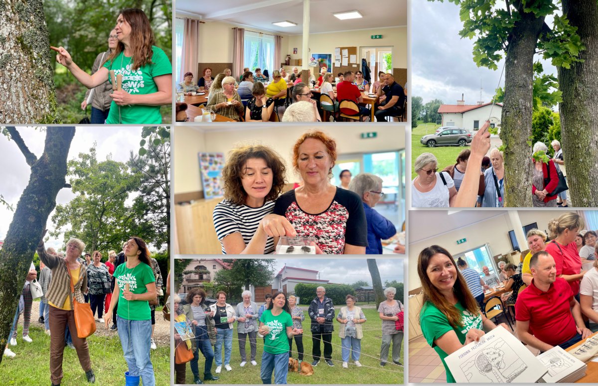 Słuchacze wybrali się na spacer edukacyjny po parku w Racławkach. Była to okazja do bliższego poznania czynności, jakie wykonuje inspektor drzew, ale przede wszystkim podziwiania piękna i majestatu starych drzew. Kończąca spotkanie gra pokazała, że drzewa są ważne dla wszystkich organizmów, a uczestnicy spotkania potrafią… świetnie się bawić!