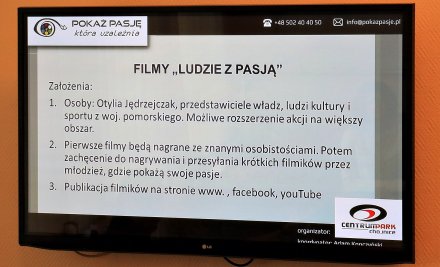 Informacje o naszej akcji będziemy publikować na stronie internetowej www.pokazpasje.pl. Logo stworzyli studenci ASP w Gdańsku – nawiązali do kształtu oka oraz filmu, rozmaita kolorystyka symbolizuje różnorodność pasji. Skoro o pasjach mowa – ambasadorami akcji będą wybitni sportowcy, Otylia Jędrzejczak i Mateusz Kusznierewicz, dołączają inne wybitne postacie. Ale przykład dają także osoby z lokalnego środowiska.