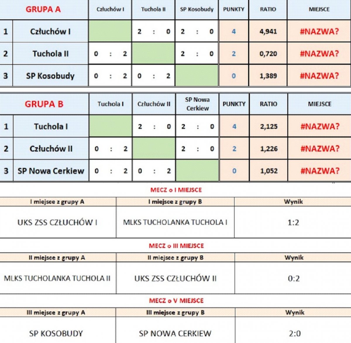 Udział bierze 6 drużyn dziewczęcych ze szkół podstawowych (Turniej Młodziczek) oraz 6 drużyn kobiecych (Turniej OPEN) z powiatu tucholskiego, człuchowskiego i chojnickiego. Po pierwszym turnieju młodziczek rozegranym w hali sportowej ZSS w Człuchowie rezultaty przedstawiają się następująco: