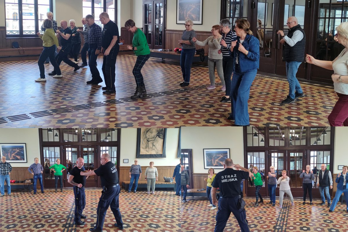 Na dworcu kolejowym w Chojnicach odbyło się czwarte spotkanie w ramach III edycji „Akademii Na Straży Seniorów". Tym razem uczestnicy poznawali podstawy samoobrony pod okiem instruktorów Straży Miejskiej.