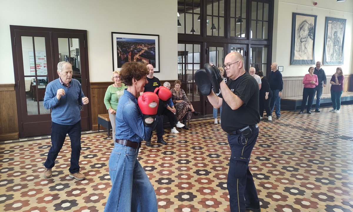 Seniorzy licznie stawili się na Akademii, by poznawać, a niektórzy udoskonalać umiejętności z zakresu obrony przed napastnikiem, jak też jak reagować w sytuacji zagrożenia. | fot. SM Ch-ce