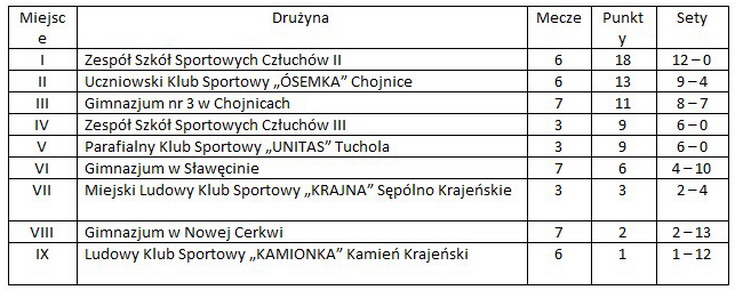 UKS „ÓSEMKA” Chojnice - Gimnazjum Sławęcin 2 : 0 (25:21, 26:24)