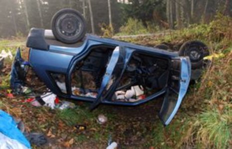 W sobotę 05.11.na trasie Małe Swornegacie - Chociński Młyn kierująca pojazdem wjechała do rowu dachując. | fot. KPP