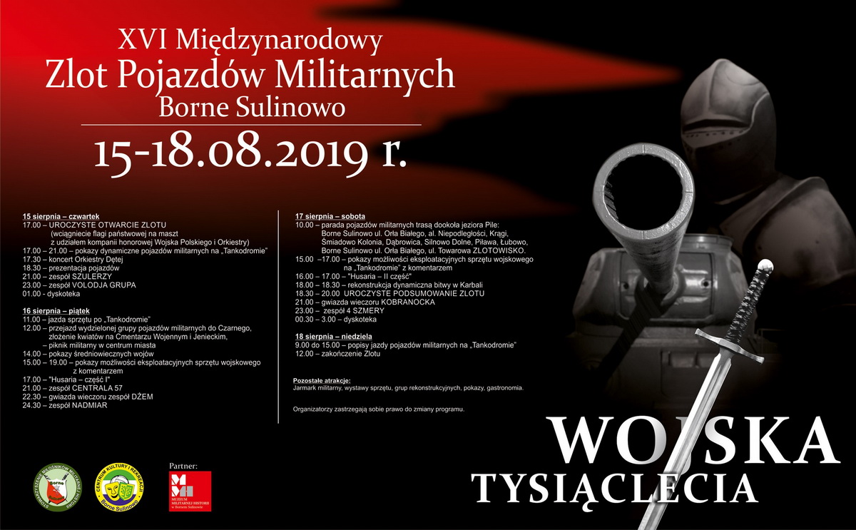 Tak naprawdę 28 października 1992 roku z garnizonu Borne Sulinowo wyjechał ostatni eszelon transportujący w kilkudziesięciu wagonach żołnierzy jednostki rakietowej. Był to ostatni oddział bojowy armii rosyjskiej, który opuścił Polskę. Garnizonowy klimat jednak pozostał i zaowocował corocznym festynem milltariów. Tegorocznym tematem przewodnim zlotu w Bornem Sulinowie są "Wojska Tysiąclecia" z pokazem husarii oraz niezwykle efektowna inscenizacja "Karbala" (wszyscy pamiętamy film !). Było to największe starcie bojowe żołnierzy polskich od czasów II wojny światowej, które przez wiele lat było tematem tabu. Takim dodatkowym "smaczkiem" będzie możliwość spotkania i porozmawiania z uczestnikami boju o City Hall w irackiej Karbali.