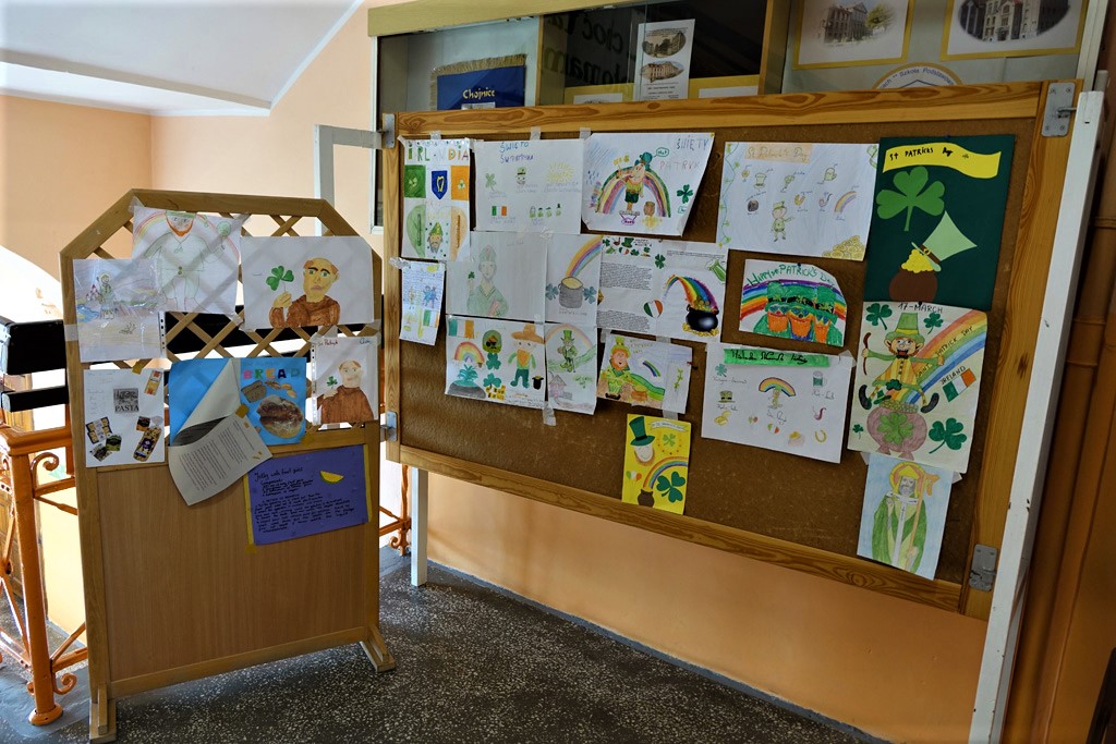 Obchody Dnia Św. Patryka to doskonała okazja do przybliżenia uczniom historii, tradycji i zwyczajów jednego z państw anglojęzycznych. W tym dniu nawet w pokoju nauczycielskim pojawiły się zielone akcenty. Wszystkie dzieci chętnie uczestniczyły w obchodach Dnia Świętego Patryka wraz z opiekunami – nauczycielami języka angielskiego: A. Bajerowską, B. Kak, A. Markowską, M. Pestką, E. Kałaczyńską, A. Redzimską, M. Deliktą oraz A. Gierszewskim.