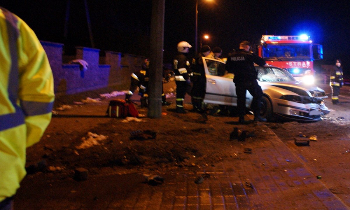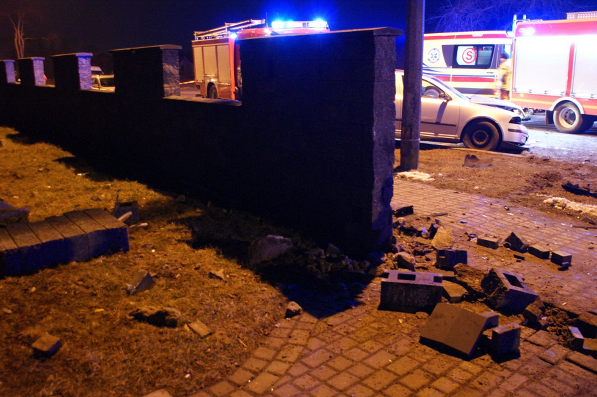 Siła z jaką skoda wbiła się w solidne betonowe ogrodzenie i uderzyła w słup oświetleniowy była bardzo duża. Fragmenty muru wykonanego z bloczków były rozrzucone w promieniu kilku metrów. Funkcjonariusze nałożyli na sprawcę - kierowcę vw polo - mandat w wysokości 300 zł i 6 pkt karnych. Kierujący byli trzeźwi.