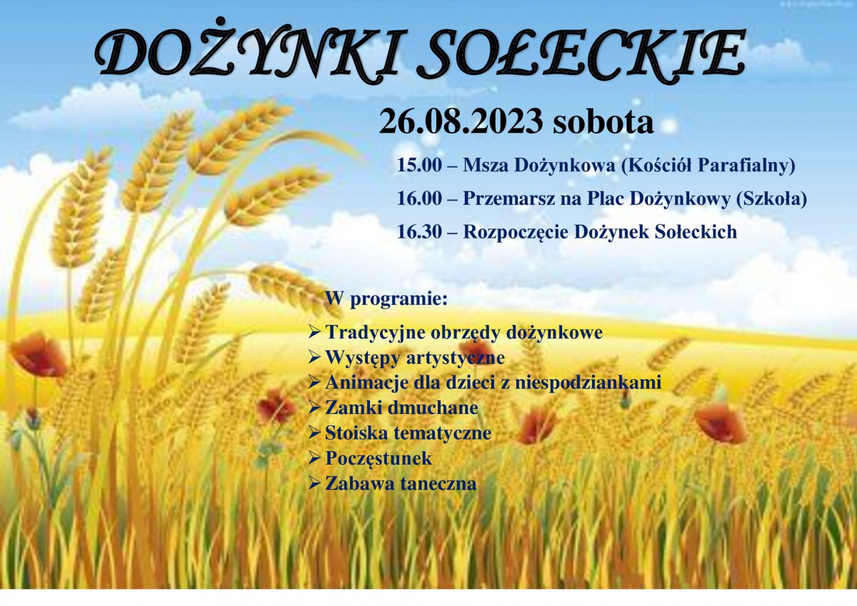 W sobotę 26 sierpnia Sołectwo Lichnowy organizuje uroczystości dożynkowe. Rozpoczną się Mszą św. o g. 15.00 w miejscowym kościele parafialnym, skąd w korowodzie mieszkańcy przejdą na plac dożynkowy, który jak co roku jest przy Szkole Podstawowej.