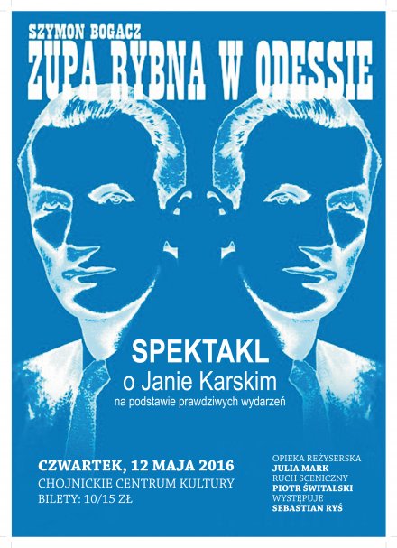 Chojnickie Centrum Kultury zaprasza w czwartek 12 maja o godz. 19:00 na spektakl w ramach projektu Teatr Repertuarowy. Przedstawienie "Zupa rybna w Odessie" to wielokrotnie nagradzana opowieść o Janie Karskim.