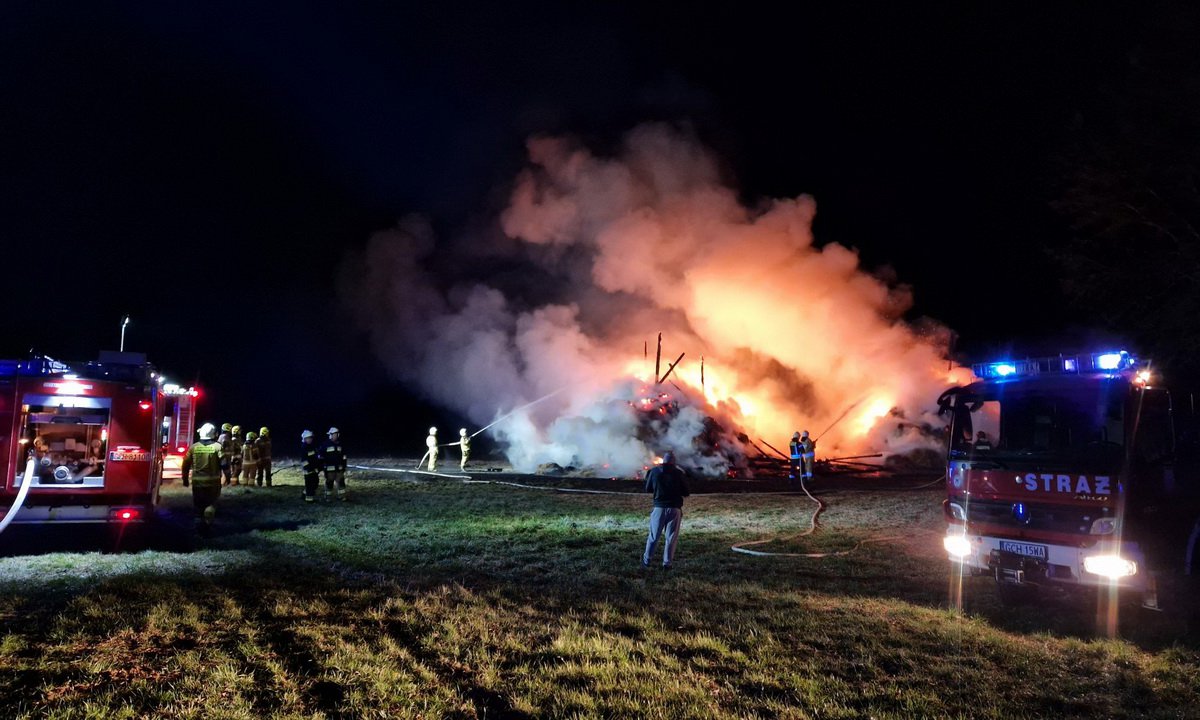 Po przybyciu strażaków okazało się, że ogniem objęta jest cała stodoła wypełniona słomą. Ze względu na łatwopalny materiał pożar bardzo szybko się rozprzestrzenił, a obiekt stanął w płomieniach. Na szczęście w bezpośrednim sąsiedztwie nie znajdowały się inne zabudowania, co ograniczyło ryzyko rozprzestrzenienia się ognia.