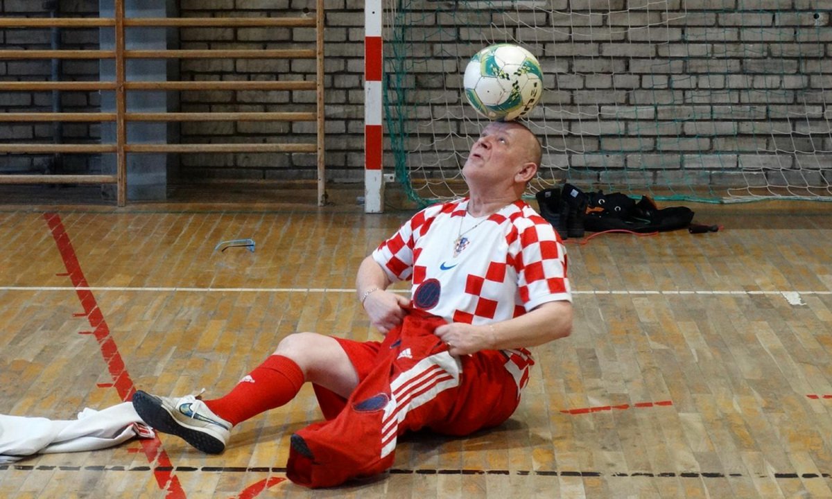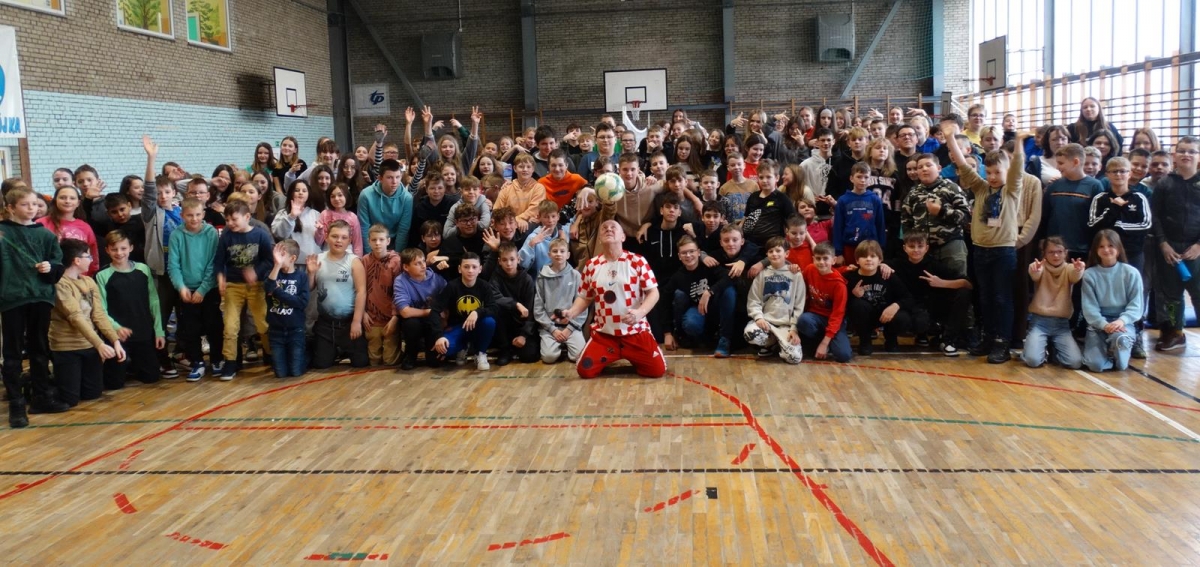 Janusz Chomontek od ponad 30 lat zajmuje się odbijaniem piłek i robi pokazy dla dzieci i młodzieży w szkołach. Uczniowie mieli możliwość zobaczyć umiejętności wyjątkowego gościa. | fot. SP 3