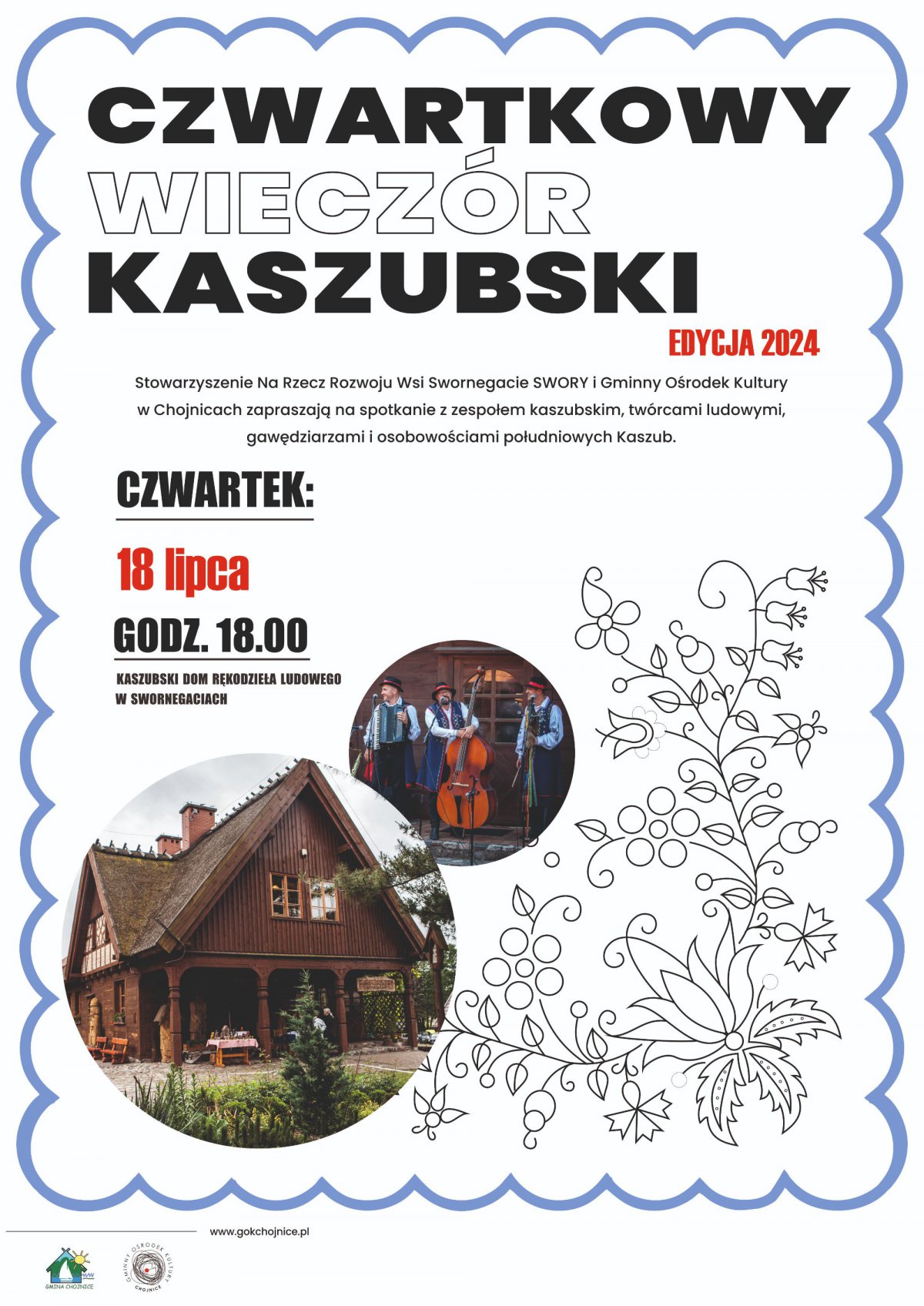 Przed nami kolejne spotkanie z cyklu „Czwartki Kaszubskie”. Publiczność zabawiać będzie Kaszubska Grupa Folklorystyczna. Można będzie posłuchać muzyki ludowej, wysłuchać ciekawych narracji, opowiadań i dowcipów w języku kaszubskim.