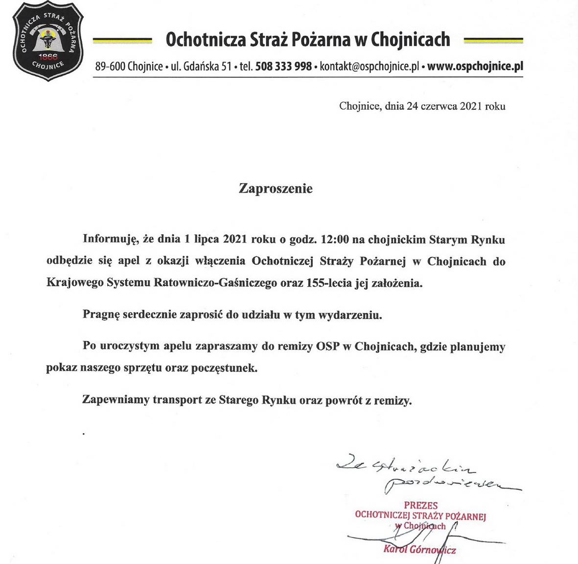 Ochotnicza Straż Pożarna w Chojnicach jest najstarszą w okolicy i jedną z najstarszych ochotniczych formacji w kraju, niosącą pomoc potrzebującym mieszkańcom powiatu chojnickiego i okolic.