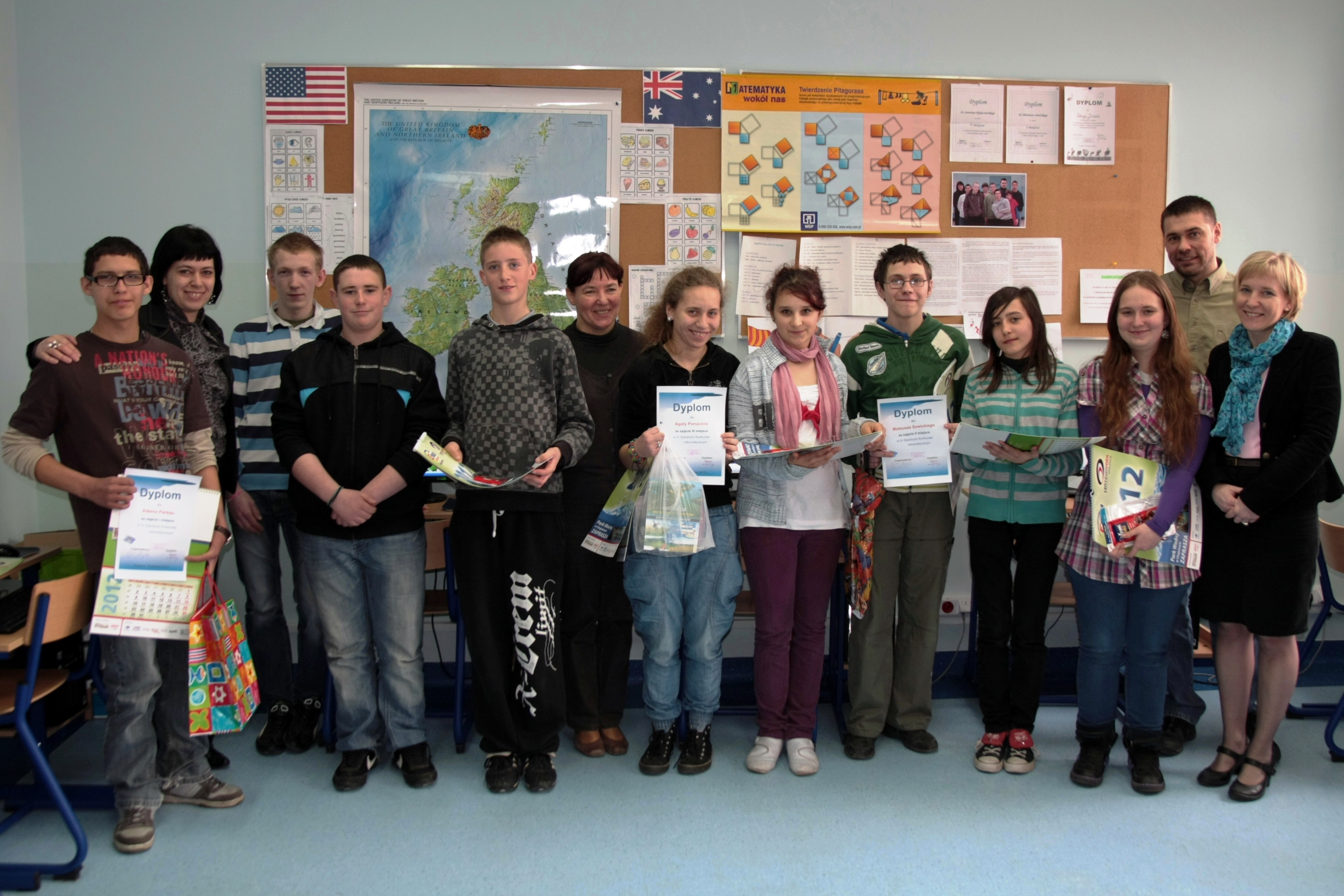 Po podliczeniu punktów zdobytych w kolejnych etapach konkursu okazało się, że najlepszym znawcą zagadnień informatycznych w szkole jest Adam Pankau, tuż za nim uplasował się Mateusz Sawicki, a trzecie miejsce zajęła Agata Poniecka. Warto podkreślić, iż każdy z zawodników wykazał się dużą wiedzą, zapałem do pracy, wytrwałością i sporymi umiejętnościami. Wszystkim uczestnikom konkursu, a szczególnie zwycięzcom, serdecznie gratulujemy!