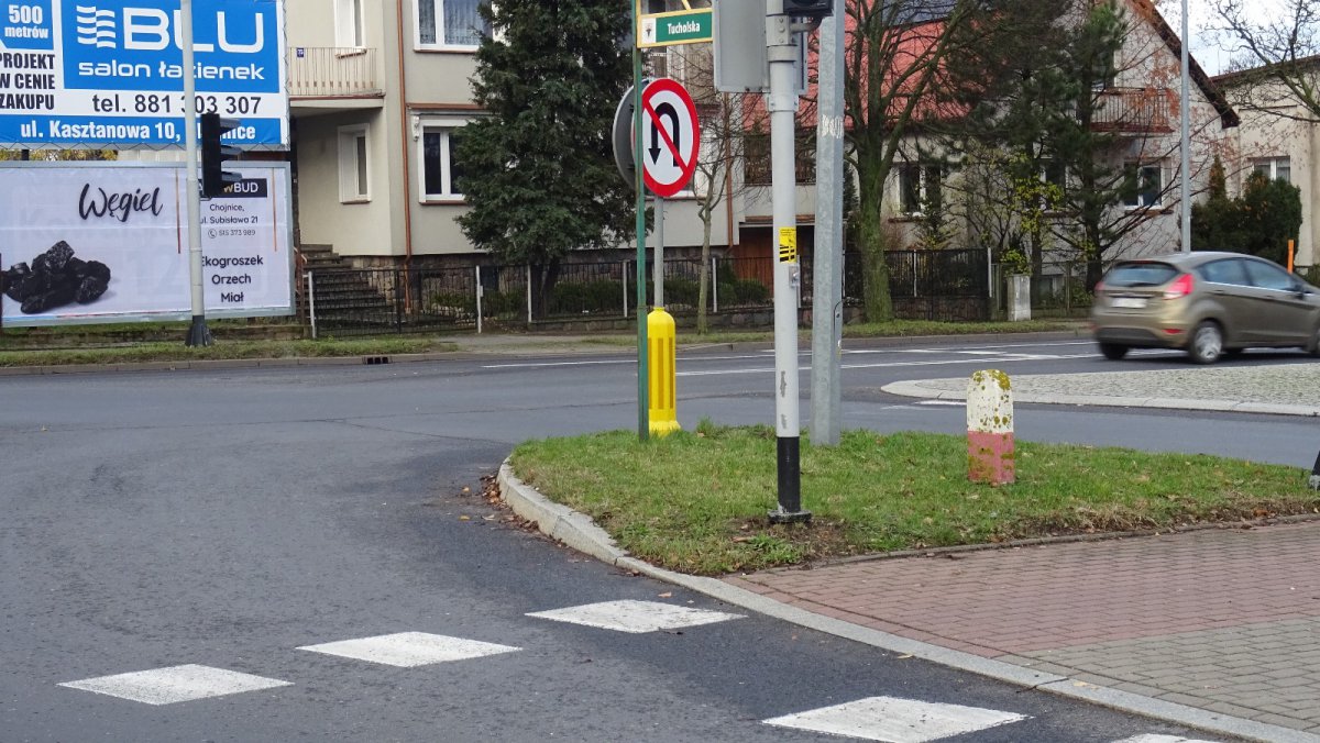 Może chociaż te krzaki i ten betonowy płot rozebrać. Trochę by to poprawiło sytuację. I druga rzecz. Ja wiem, że to nie jest kompetencja Urzędu Miasta, ale ten znak „zakaz zawracania”, co jest postawiony teraz na skrzyżowaniu Tucholskiej z Gdańską. Nie wiem kto go tam umieścił. Ja miałem przyjemność jechać dzisiaj tamtędy i w zasadzie ten znak zauważyłem przypadkiem. Bo jadąc patrzę na sygnalizatory, patrzę na znaki, które są na odpowiedniej wysokości posadowione. Ten znak jest gdzieś tam nisko przywieszony, a mało tego - trzy słupy go zasłaniają. Tak że widać tylko kawałek. Można go na przykład podwiesić na tym wysięgniku od sygnalizacji świetlnej. Byłby to chyba lepszy pomysł, niż taki schowany za trzema słupami.