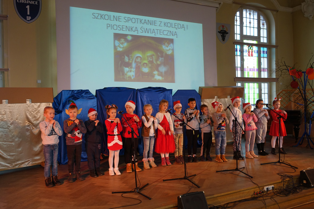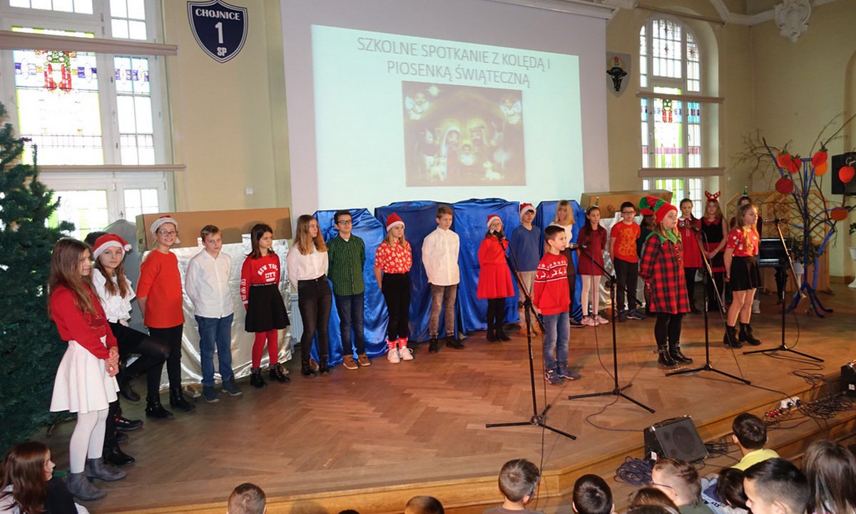 Podziękowania należą się wszystkim klasom wraz z nauczycielami które przygotowały się do kolędowych występów. Składamy także serdeczne podziękowanie Marketowi ,,Mrówka’’ w Chojnicach za ufundowanie pięknej choinki do dekoracji szkolnej auli. Organizatorem tej świątecznej imprezy był Michał Leszczyński.
