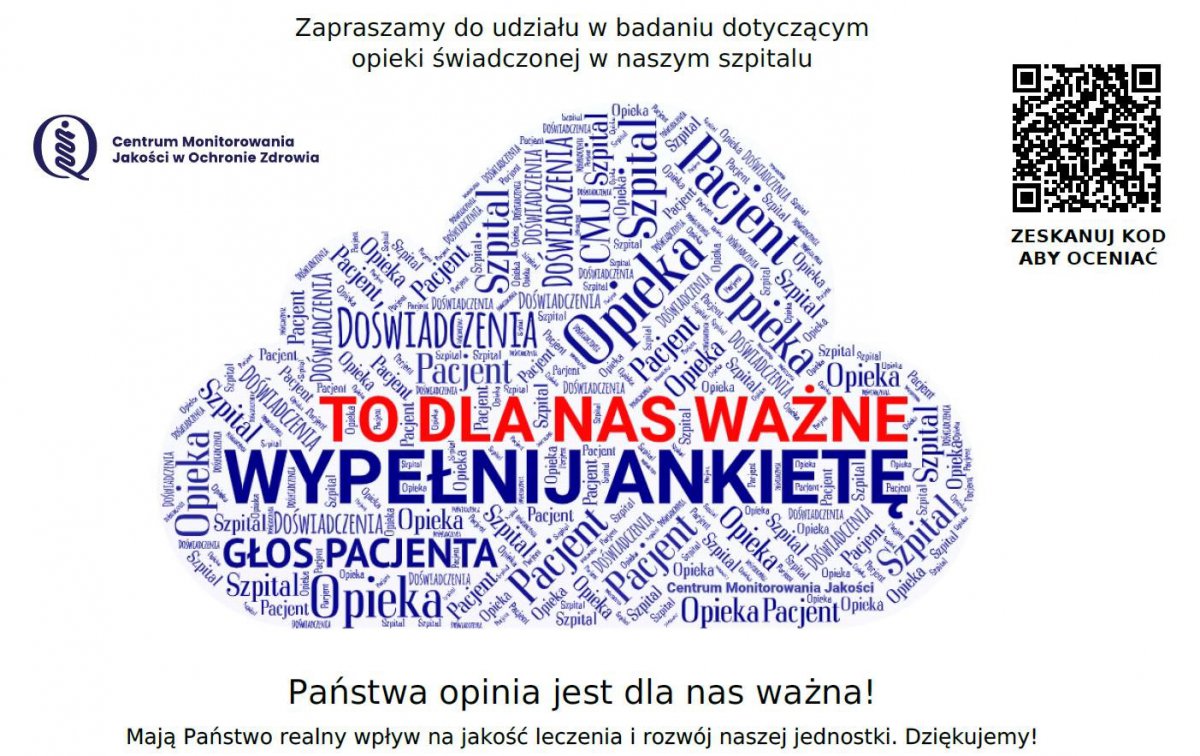 Chojnicki Szpital Specjalistyczny zaprasza wszystkich pacjentów, którzy przebywali na oddziałach, do udziału w badaniu opinii na temat jakości świadczonych usług medycznych i otrzymywanej opieki podczas pobytu.