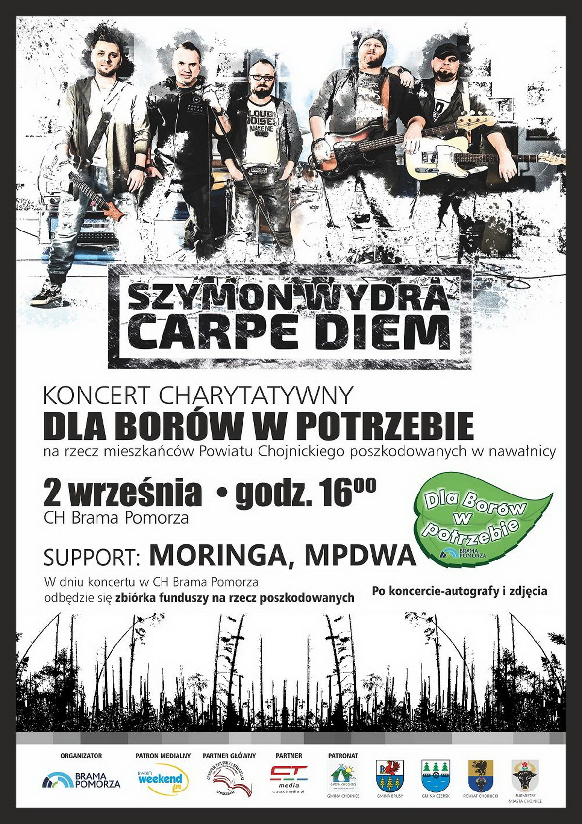 2 września Centrum Handlowe Brama Pomorza organizuje koncert charytatywny dla poszkodowanych w niedawnej nawałnicy. W koncercie wystąpią Szymon Wydra z zespołem oraz zespoły MP2 i Moringa z naszego regionu.