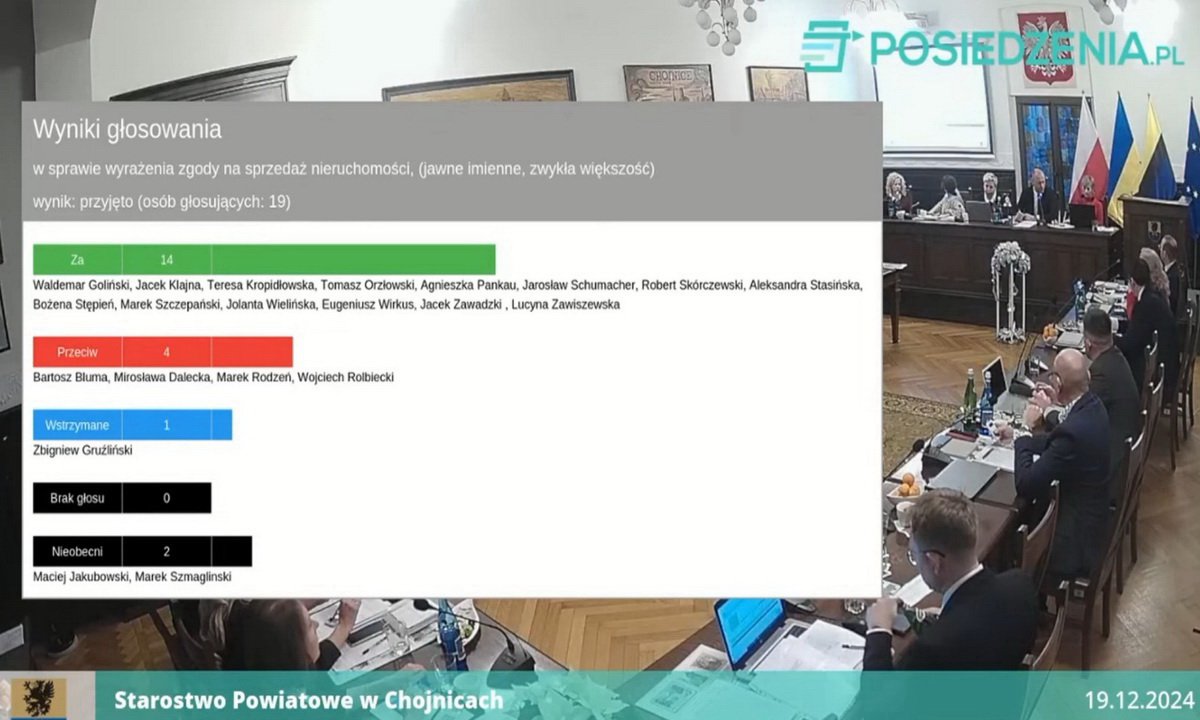 Podczas wczorajszej (19.12.) sesji Rady Powiatu Chojnickiego jedna z uchwał, jak zapowiadaliśmy, dotyczyła zbycia udziału powiatu w nieruchomości zajmowanej kiedyś przez chojnicki oddział PKO. Poparło ten projekt 14 radnych.