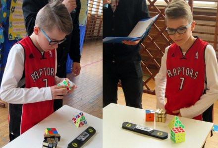 W tym roku niewątpliwie zrobili to: uczeń klasy piątej błyskawicznie układający różnorodne typy kostki Rubika w czasie naprawdę mistrzowskim, dwaj chłopcy z oddziałów przedszkolnych: a) pierwszy - znający stolice i flagi wszystkich krajów na świecie, b) drugi - świetnie (i bezbłędnie) posługujący się tabliczką mnożenia.