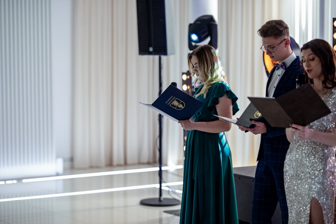 Tradycyjnym elementem studniówki jest polonez tańczony przez uczniów, ale młodzież nie zapomniała też o podziękowaniach dla swoich nauczycieli oraz rodziców. | fot. nadesł.