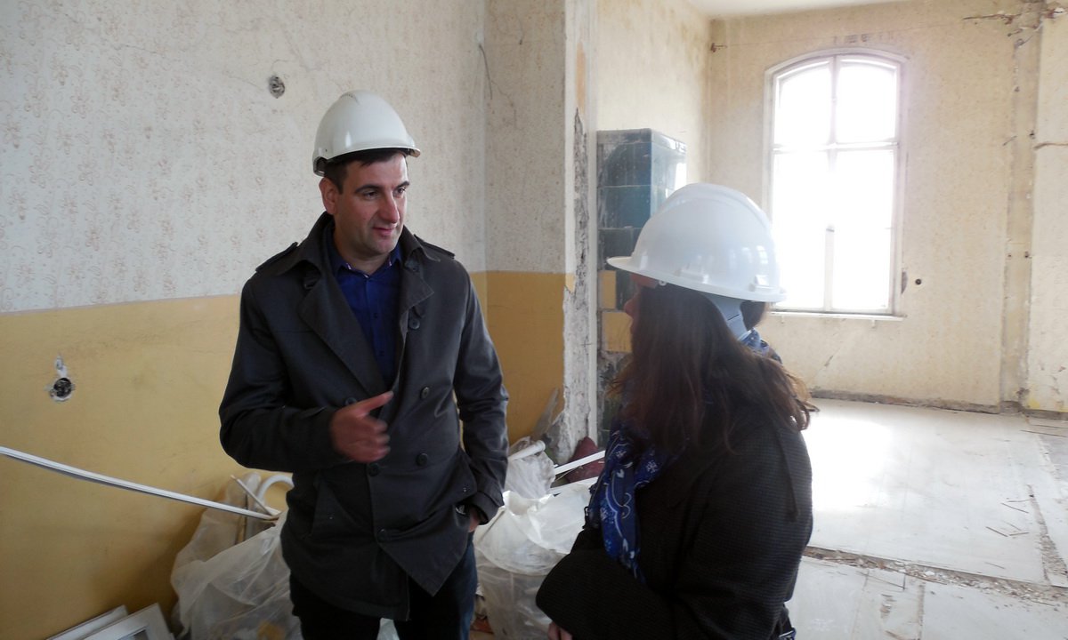 Oględziny rozpoczęto od I piętra, gdzie wyburzono już niektóre ściany działowe, skuto część stropów i otwory drzwiowe. Tam ma znaleźć nową siedzibę Straż Miejska i Centrum Miejskiego Monitoringu. Wcześniej w tym miejscu były mieszkania służbowe. Niedaleko swoje biuro miało Stowarzyszenie Miłośników Kolejnictwa.