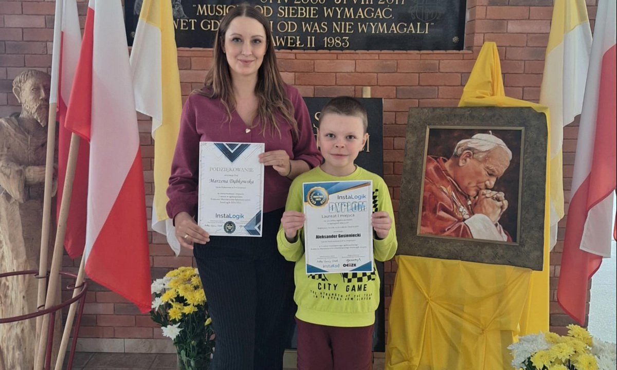 Szkoła Podstawowa nr 8 może być dumna – Aleksander Gosieniecki z klasy 4b osiągnął niezwykły sukces! Zdobył tytuł Laureata I miejsca na szczeblu ogólnopolskim w kategorii klas czwartych w prestiżowym konkursie InstaLogik!