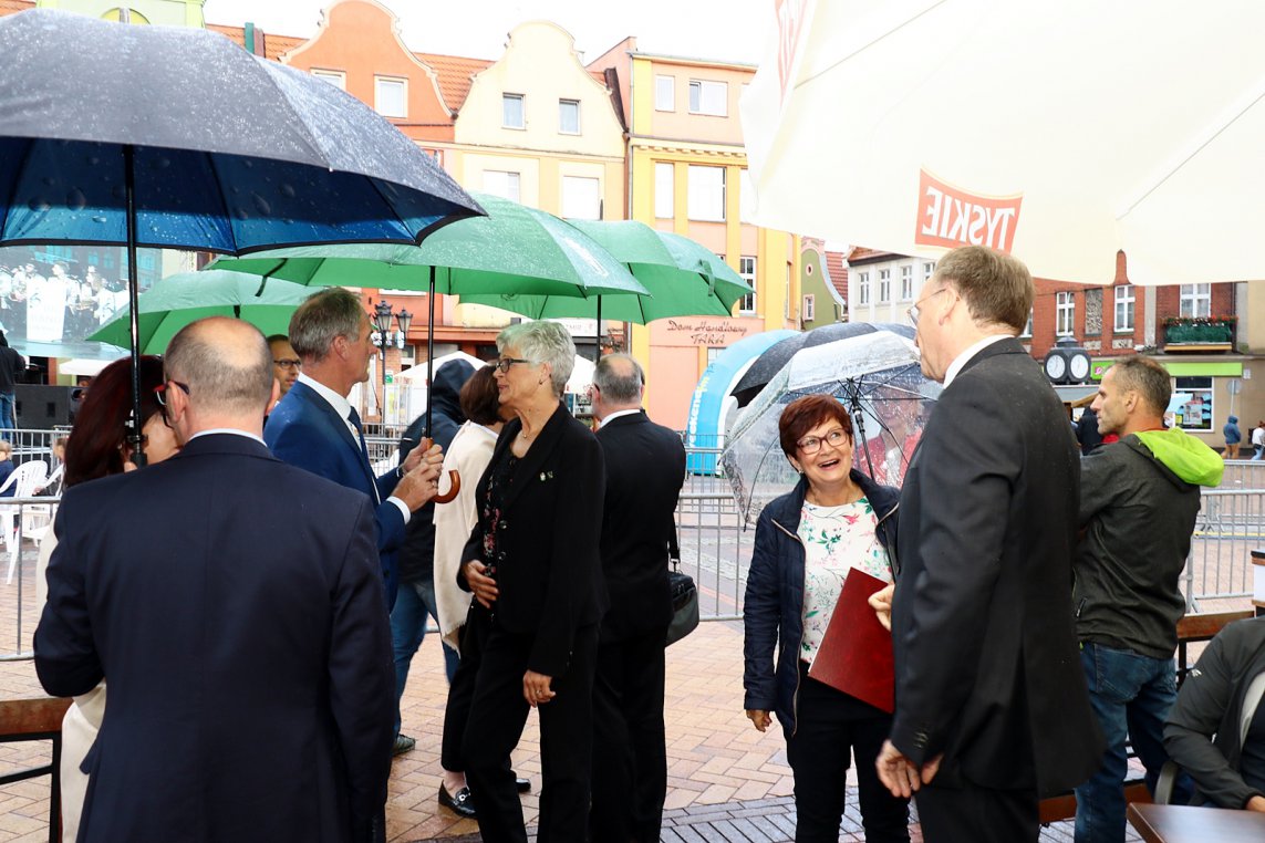 - Musimy pamiętać o zobowiązaniach, które podjęliśmy wobec mieszkańców cztery lata temu – mówił burmistrz, który po omówieniu najważniejszych planów i inwestycji w Chojnicach, życzył wszystkim dobrej zabawy podczas trzech dni święta miasta, a gościom z Niemiec oraz chojniczanom dodatkowo powodzenia podczas meczów weekendowych meczów reprezentacji na mistrzostwach świata. Georg Moenikes, burmistrz Emsdetten, podkreślał, że najważniejsza jest przyjaźń między mieszkańcami.
