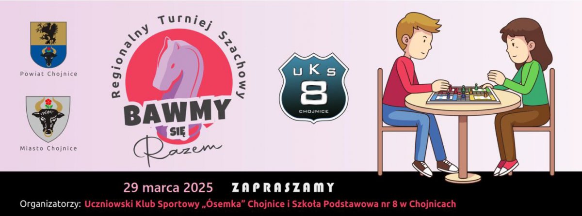 Zachowując wieloletnią tradycję Uczniowski Klub Sportowy „ÓSEMKA” Chojnice organizuje w sobotę 29 marca- XXIV Regionalny Turniej Szachowy pod hasłem „Bawmy się razem”. Szachy błyskawiczne 2025.