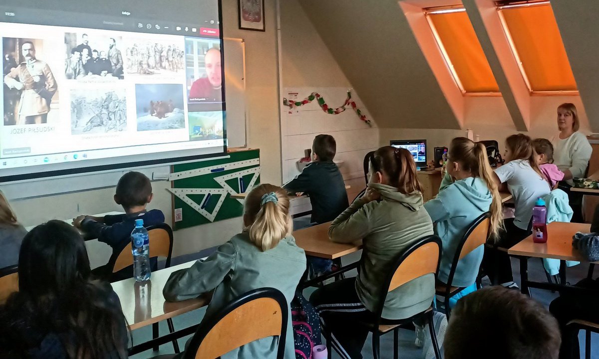 Lekcje online z historii, to nowa propozycja Przystanku Historia Centrum Edukacyjnego IPN im. Janusza Kurtyki w Warszawie. W październiku i listopadzie w naszej szkole odbyły się lekcje online z historii dla klas IV - VIII przeprowadzone przez pracowników Instytutu Pamięci Narodowej. Tematem zajęć było „11 listopada 1918 roku – odzyskanie niepodległości”.