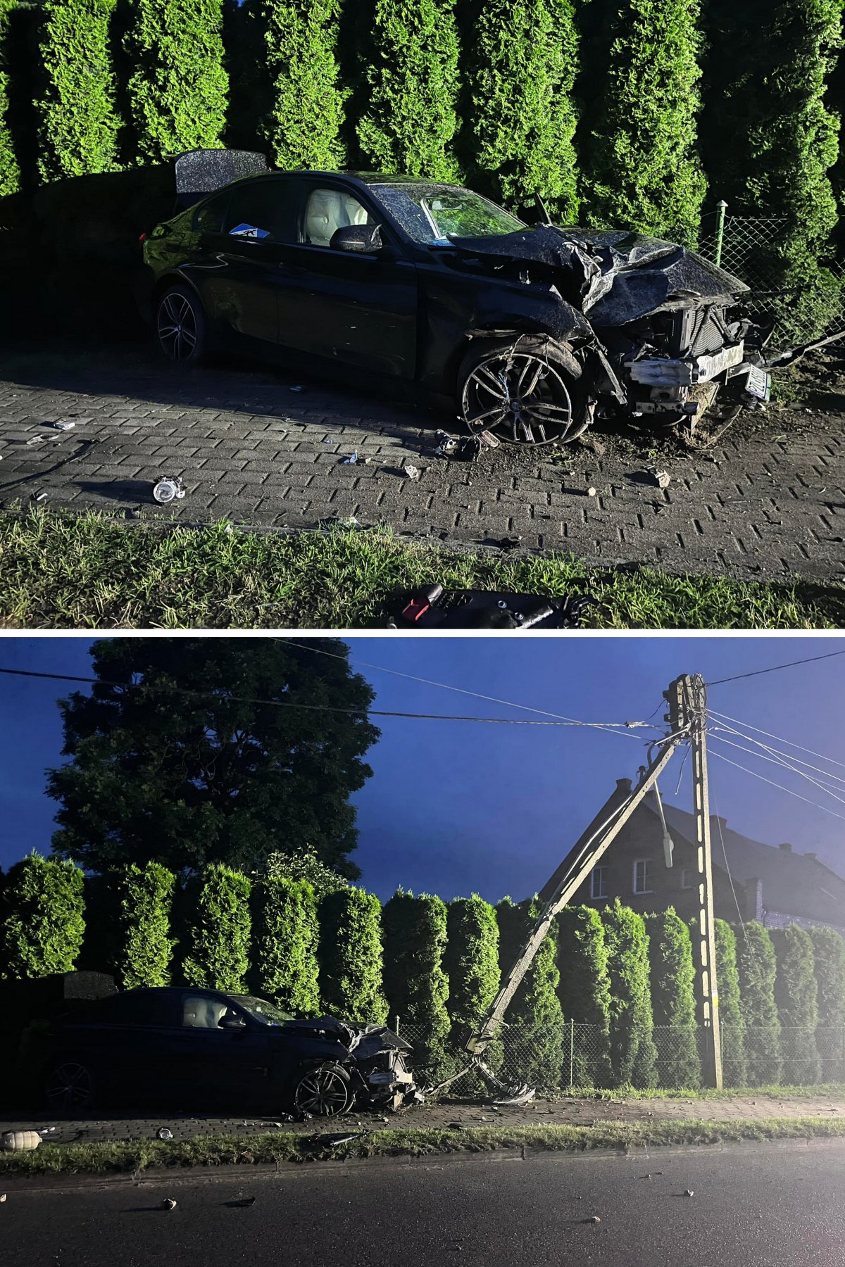 Ze wstępnych ustaleń funkcjonariuszy wynika, że kierujący pojazdem BMW znajdując się na łuku drogi stracił panowanie nad pojazdem, w wyniku czego zjechał na pobocze drogi i uderzył w słup energetyczny. Kierujący uciekł z miejsca zdarzenia.
