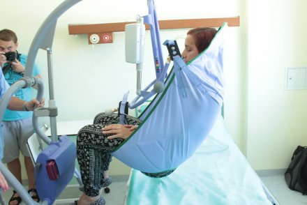 - Jest to wygoda szczególnie dla personelu, bo po długotrwałej pracy pielęgniarki odczuwały kłopoty z kręgosłupem. Także pacjenci mogą czuć się wygodnie w tym podnośniku. Udowodniła to podczas prezentacji jedna z pacjentek pulmonologii, Agnieszka Zblewska.