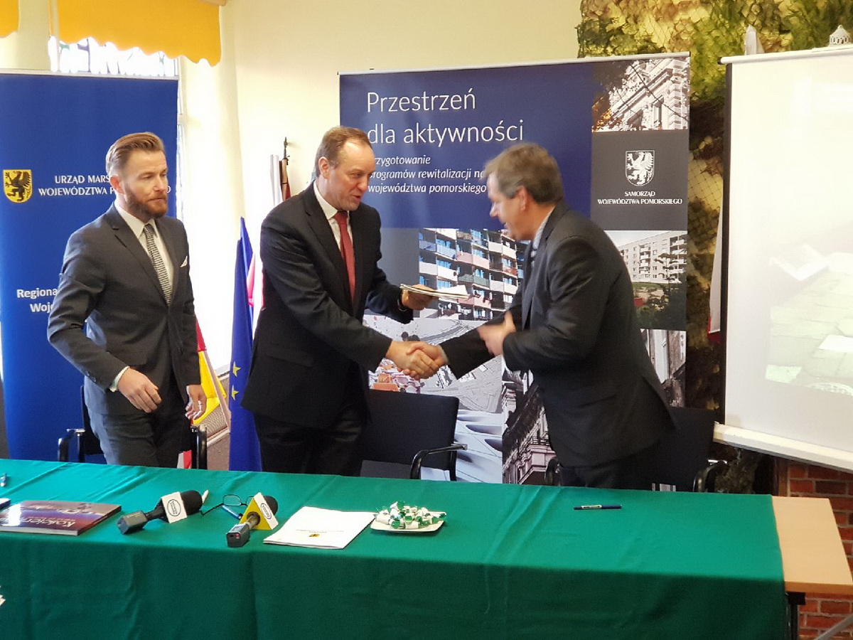 Dziś (22.12.) w Kościerzynie marszałek województwa pomorskiego Mieczysław Struk i burmistrz Arseniusz Finster podpisali umowę na dofinansowanie realizacji dwóch projektów w ramach Gminnego Programu Rewitalizacji.