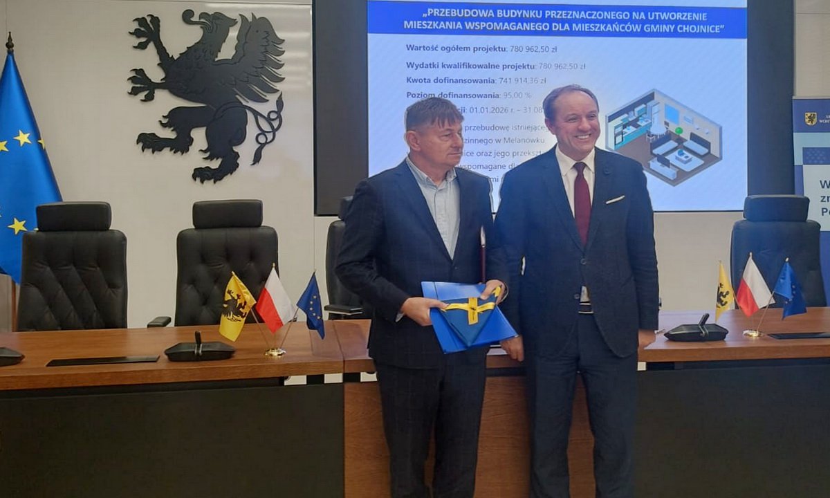 W Urzędzie Marszałkowskim Województwa Pomorskiego w Gdańsku podpisana została umowa o dofinansowanie na zadanie pn. „Przebudowa budynku przeznaczonego na utworzenie mieszkania wspomaganego dla mieszkańców Gminy Chojnice”.